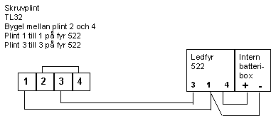 Timer länk TL32 – 522.A (Matningsspänning från TL32 styr Ledfyren via kabel ). Mobiltelefon aktiverar GSM Mottagare, som aktivera Timer länk TL32, som sedan aktiverar sedan Ledfyren, om kopplaren under Ledfyren är i läge Fast ledljud på. Fyren kan också aktiveras med Yreca sändare, om det finns batterier i Fyren. Stopp, omstart eller automatiskt avstängning av ledljudet, beror på omkopplarnas läge. Har fyren aktiverats med mobiltelefon, stängs den av automatiskt av TL32. Ledljudets Aktiverings tiden 20 sek – 4 min bestäms med potentiometer på TL32. Vad som händer om Fyren aktiveras igen under pågående Ledljud beror på den in vändiga omkopplarens (Omstart-Stopp) läge på TL32. Är omkopplaren i läge Stopp, stängs Ledljudet av. Är omkopplaren i läge Omstart, startar Ledljudet igen, och går hela timer tiden. Har fyren aktiverats med Yreca Sändare, stängs den av automatiskt av Ledfyrens interna timer efter viss tid, om omkopplaren under fyren är i läge Timer på. Ledljudets Aktiverings tiden 20 sek – 4 min bestäms med timer potentiometer under locket på Ledfyren Ledfyr 522 och Fyr 527 har också en omkopplare (Omstart-Stopp) under locket. Är omkopplaren i läge Stopp, stängs Ledljudet av. Är omkopplaren i läge Omstart, startar Ledljudet igen, och går hela timer tiden. Anslut Radiolänk TL32 till GSM