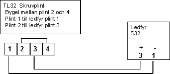 på TL32 ansluts till skruvplint 3 på Ledfyr 532.